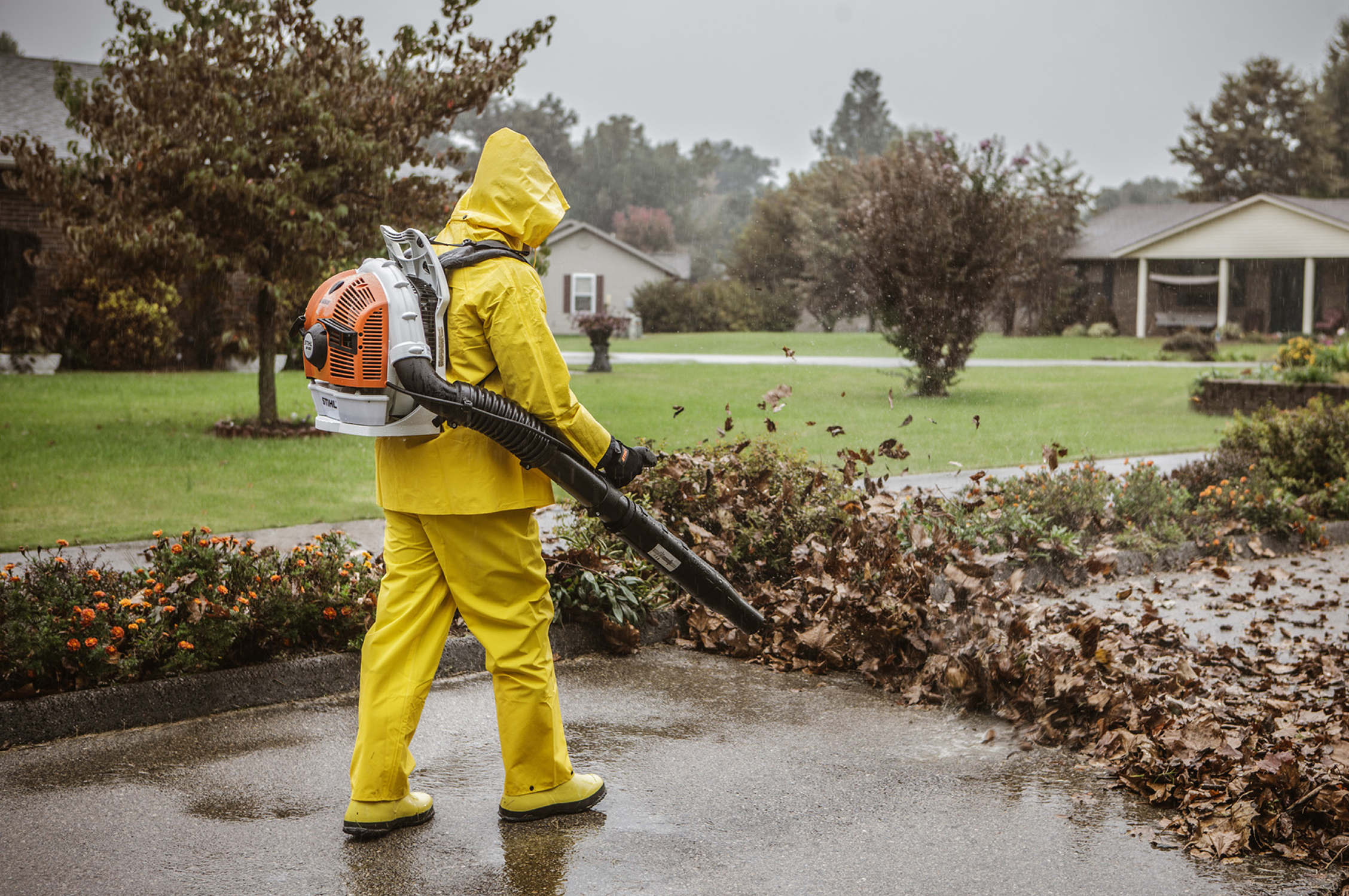 Met de krachtige benzine bladblazers van STIHL behoort het tijd rovende werk met bezem en hark definitief tot het verleden.
